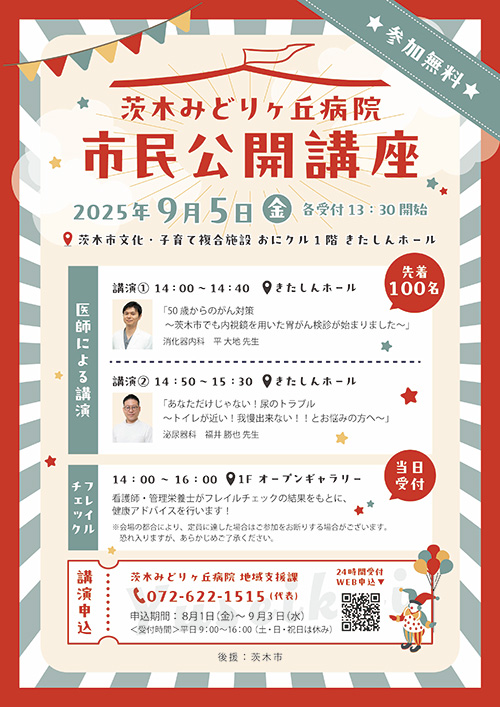 茨木みどりヶ丘病院が贈る市民公開講座の開催が決定しました!